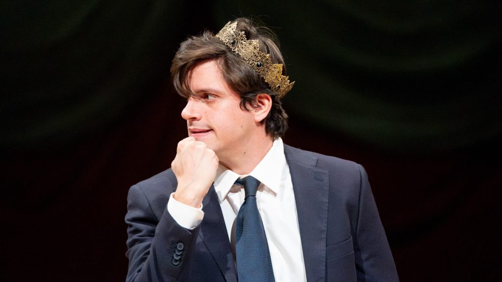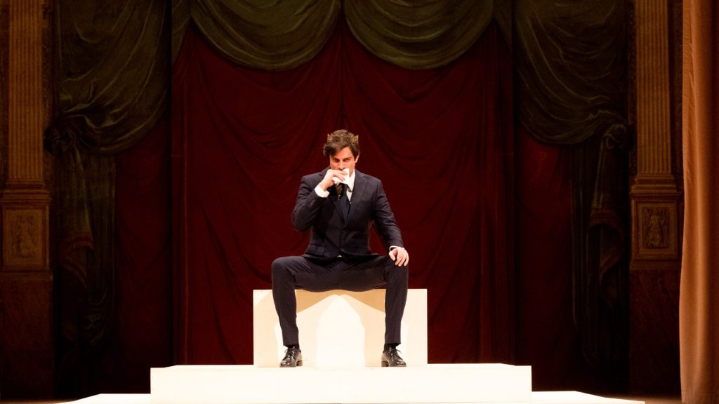 In un regno sconvolto dalla guerra civile, un Principe si ribella ai suoi doveri di palazzo per intraprendere una formazione nera che lo porterà a diventare un sovrano illuminato. Figlio di un Re illegittimo, il giovane erede al trono sceglie come padre elettivo un geniale fuorilegge, Falstaff, che lo guiderà in un percorso iniziatico alla ricerca di una terza via tra uccidere i padri e non crescere mai. Questa è la storia di Hal, protagonista di Enrico IV, dramma storico in due parti con cui Shakespeare immagina la formazione politica di Enrico V, figura tra le più importanti del medioevo inglese. Il suo arco di trasformazione non è solo un percorso di crescita: è un vero e proprio rito di legittimazione del potere ereditato, un’opera alchemica universale e senza tempo. Seguendo le orme di Hal, questa libera riscrittura indaga l’identità politica delle nuove generazioni (Millennials e Gen Z) e il loro rapporto col potere e con l’eredità delle generazioni precedenti (Gen X e Boomer). La lezione di Falstaff usa la contraffazione, intesa come finzione teatrale, imitazione letteraria e inganno performativo, per parlare di potere, nuovi media e partecipazione politica contemporanea.